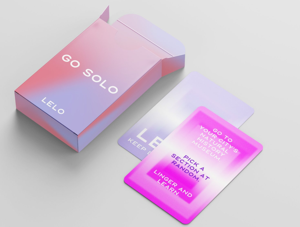 Too often, we miss out on an experience if another person cannot be there with us. Consequently, we miss out on countless opportunities to enjoy ourselves. In this activation, Lelo will challenge its followers to go solo and take part in a series of fun and rewarding activities suggested in our challenge cards.