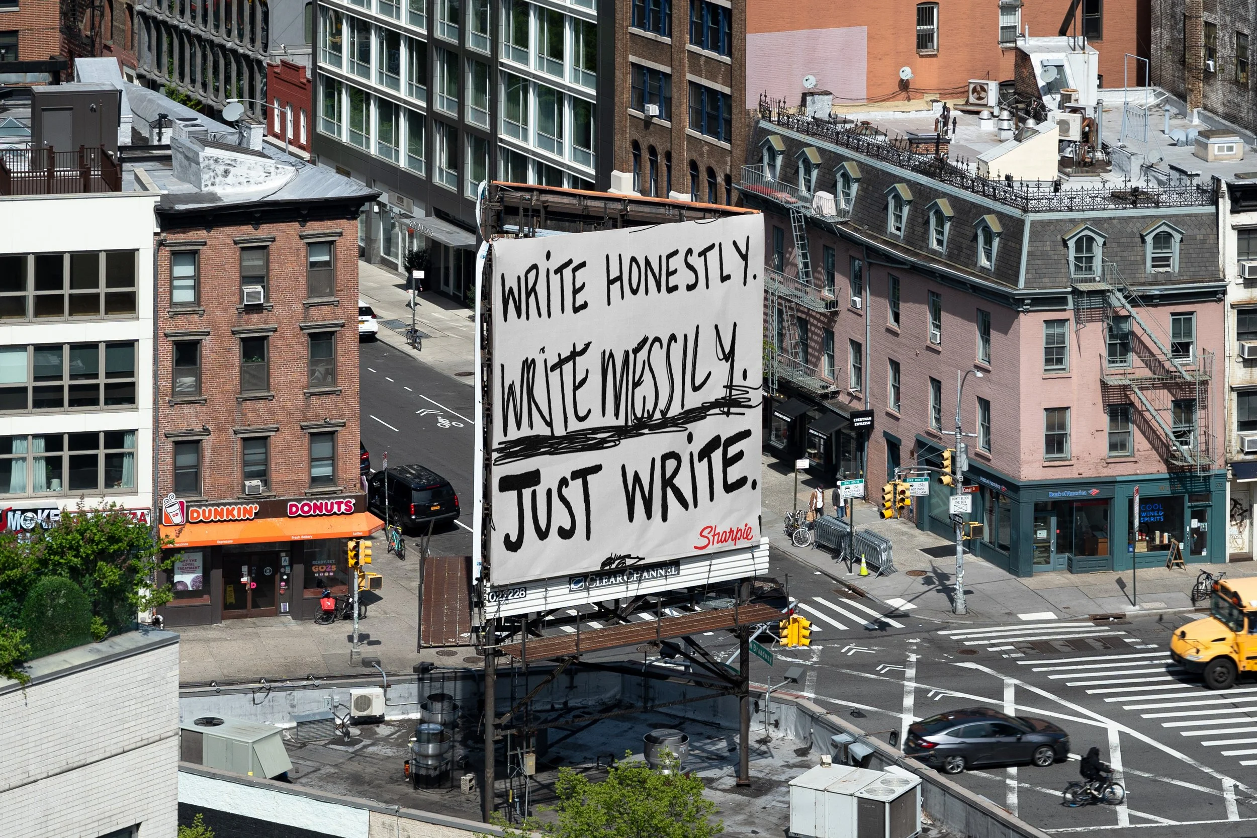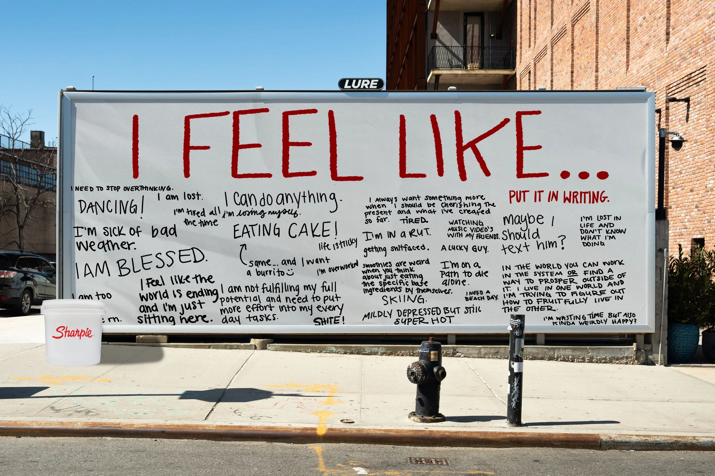 The written word does not have to be perfect to get its message across, as anyone who’s ever been in a bathroom stall knows. Sharpie pays tribute to the bathroom wall by installing blank billboards and a bucket of Sharpies in urban areas. Each will come with a prompt and an invitation to get the words out.